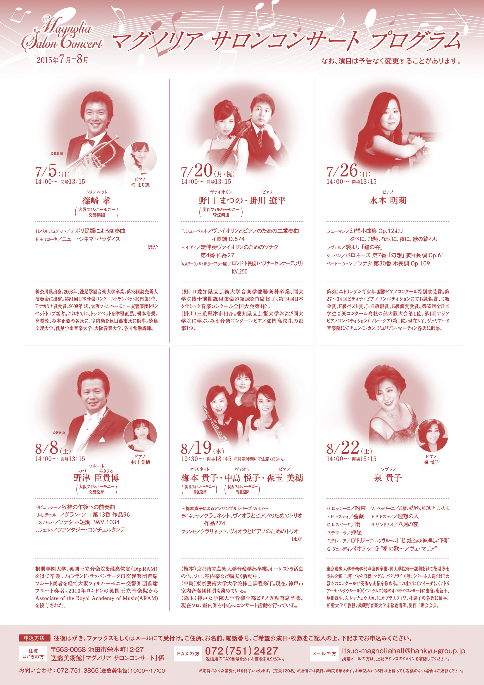 往復はがき 〒563-0058 池田市栄本町12-27「マグノリア・サロンコンサート」係