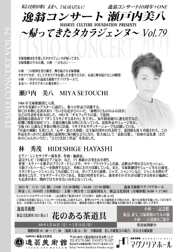 | 出演 | 瀬戸内 美八/女優 元宝塚歌劇団星組トップスター 林 秀茂/ピアノ |